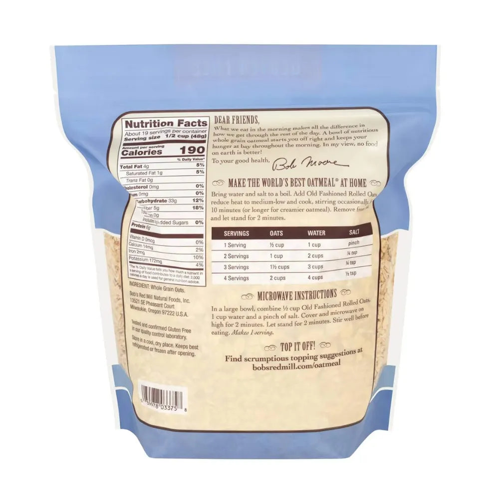 Bob's Red Mill Gluten Free Regular Rolled Oats 907g offer classic creamy porridge texture and familiar oaty flavour, made especially for those who need to avoid gluten. These wholegrain rolled oats are produced in a dedicated gluten free facility and batch-tested to help ensure purity, making them a trusted choice for coeliacs and gluten-sensitive eaters.
