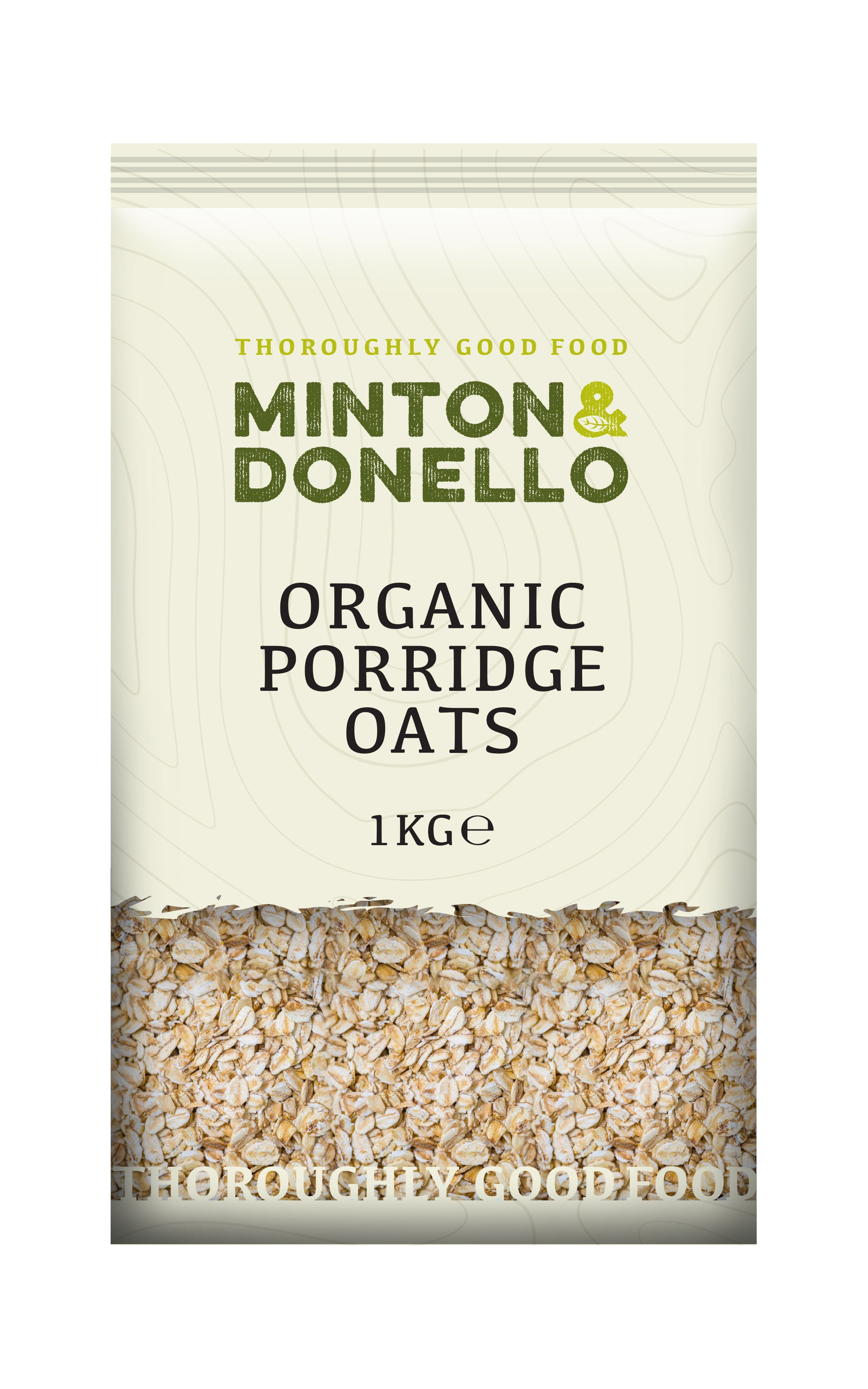 erfect for busy mornings or leisurely breakfasts, Minton & Donello Organic Porridge Oats can be prepared in just minutes. They are ideal for creating classic porridge, overnight oats, or adding a nutritious boost to homemade granola and baked goods. Each serving is free from artificial additives and preservatives, offering you the pure goodness of organic oats.