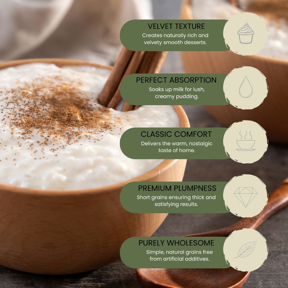 This short grain rice is incredibly versatile and can be used in both sweet and savoury recipes. Whether you're making a traditional white pudding or exploring new dessert ideas, it's the perfect choice for creating rich, hearty dishes. The rice's natural flavour enhances any recipe, making it a great addition to your cooking routine.