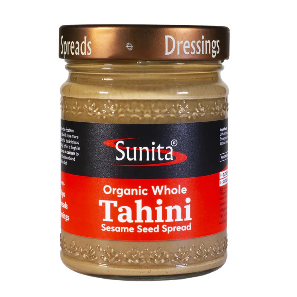 Organic whole tahini made by roasting and finely stonegrinding unhulled sesame seeds for a dark, robust paste with deep sesame character. Nothing else is added, and it blends into dressings, dips and sauces with a satisfying richness.