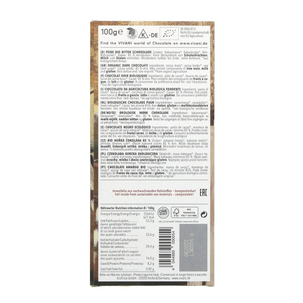 Vivani Organic Fine Dark 85% Cocoa Chocolate Bar 10 x 100g